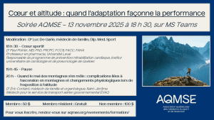 Soirée AQMSE – Coeur et altitude : quand l’adaptation façonne la performance En savoir plus : Soirée AQMSE – Coeur et altitude : quand l’adaptation façonne la performanceSoirée AQMSE – Coeur et altitude : quand l’adaptation façonne la performance